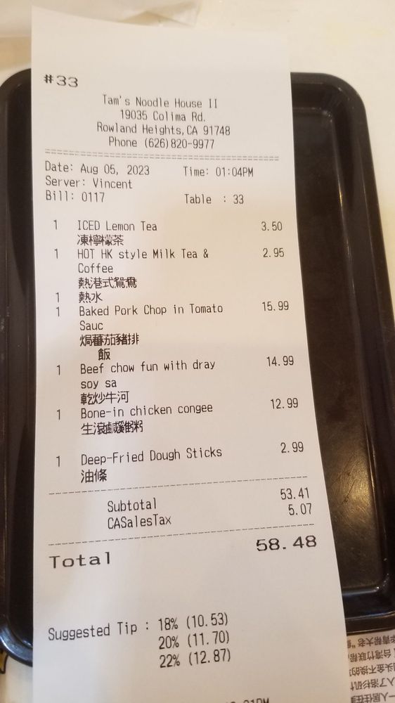 Tam's Noodle House in Rowland Heights offers a casual dining experience with a diverse menu that includes French-style filet mignon, beef chow fun, handmade rice paper with shrimp, and kaya toast. Customers praise the generous portions and reasonable prices, with many mentioning the nostalgic Hong Kong cafe ambiance. The restaurant is known for its fast and attentive service, catering options, and a variety of vegan and limited vegetarian selections. Popular dishes like salt & pepper squid, stir-fry beef noodles, and steamed shrimp rice noodles receive rave reviews. The menu also features daily specials like steamed rice rolls with special sauce. Overall, Tam's Noodle House is a go-to spot for authentic Chinese comfort food in the SGV area, offering delicious flavors and ample portions for sharing.